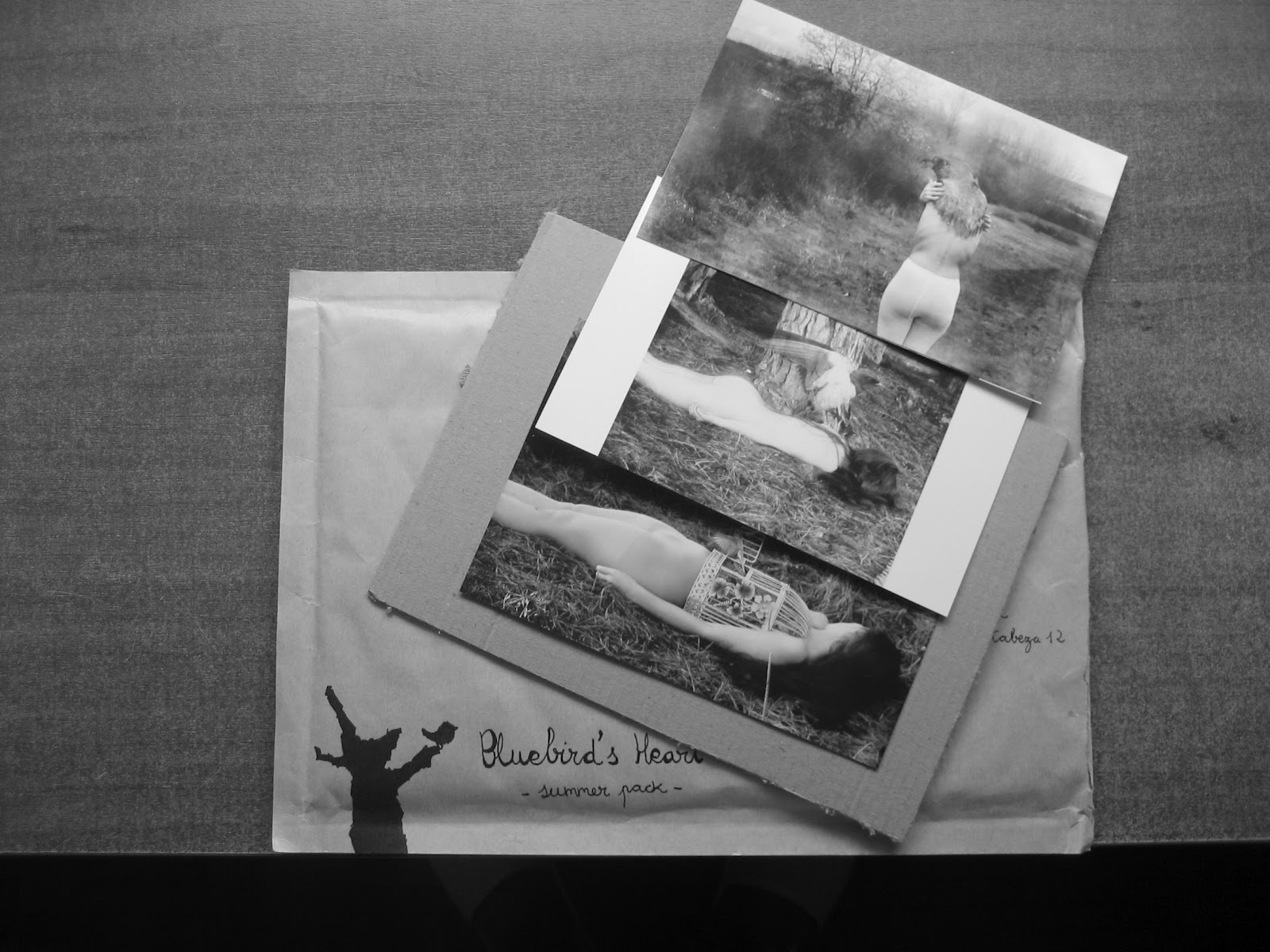 -Aquí os dejo una foto de un paquete que recibí hace un mes y medio y del que no he hablado hasta ahora. Se trata de una serie de tres fotografías de Dara Scully llamada Bluebird’s Heart que tuve que comprar irremediablemente nada más verla en su web. Si os gusta, no podéis dejar de pasar también por su tienda online y su flickr