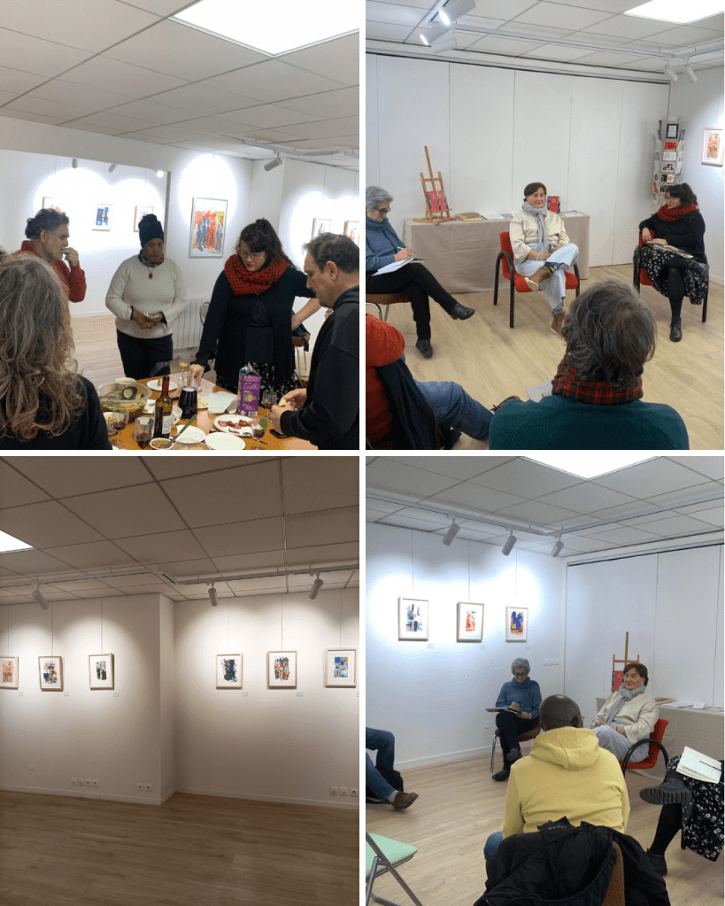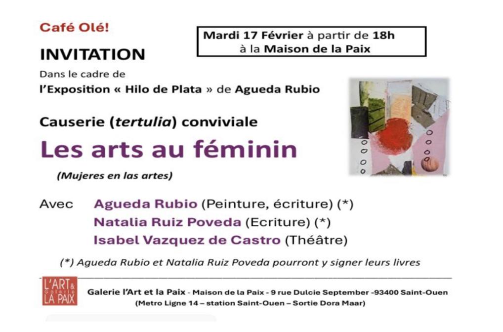 Tertulia Café Olé en el marco de la exposición de Águeda Rubio sobre el rol de las mujeres en la creación, Galérie l’Art et la Paix, Saint-Ouen, Febrero 2026. Se puede leer más sobre la tertulia aquí.