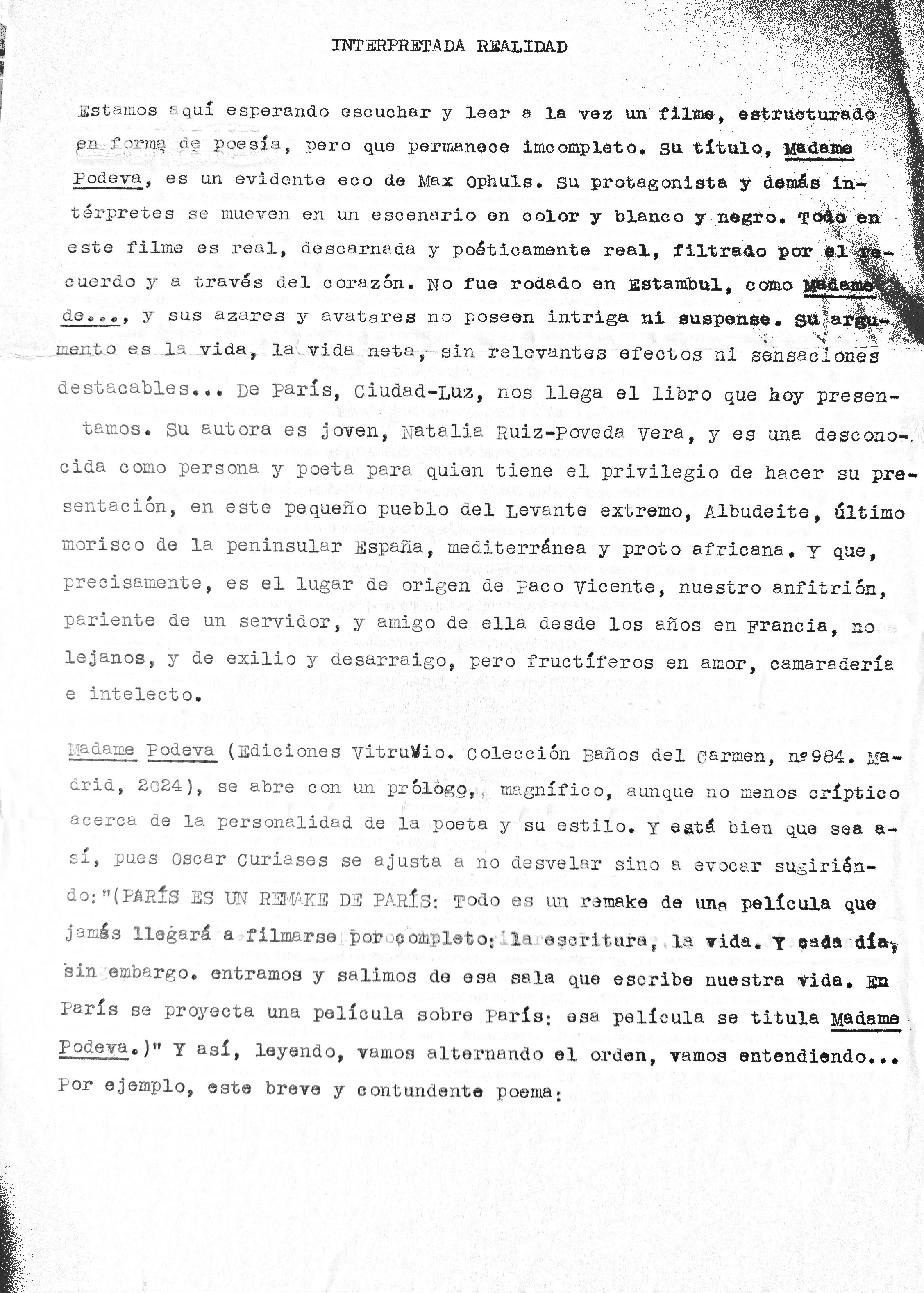 -Reseña del poeta Soren Peñalver sobre Madame Podeva, Marzo de 2024: